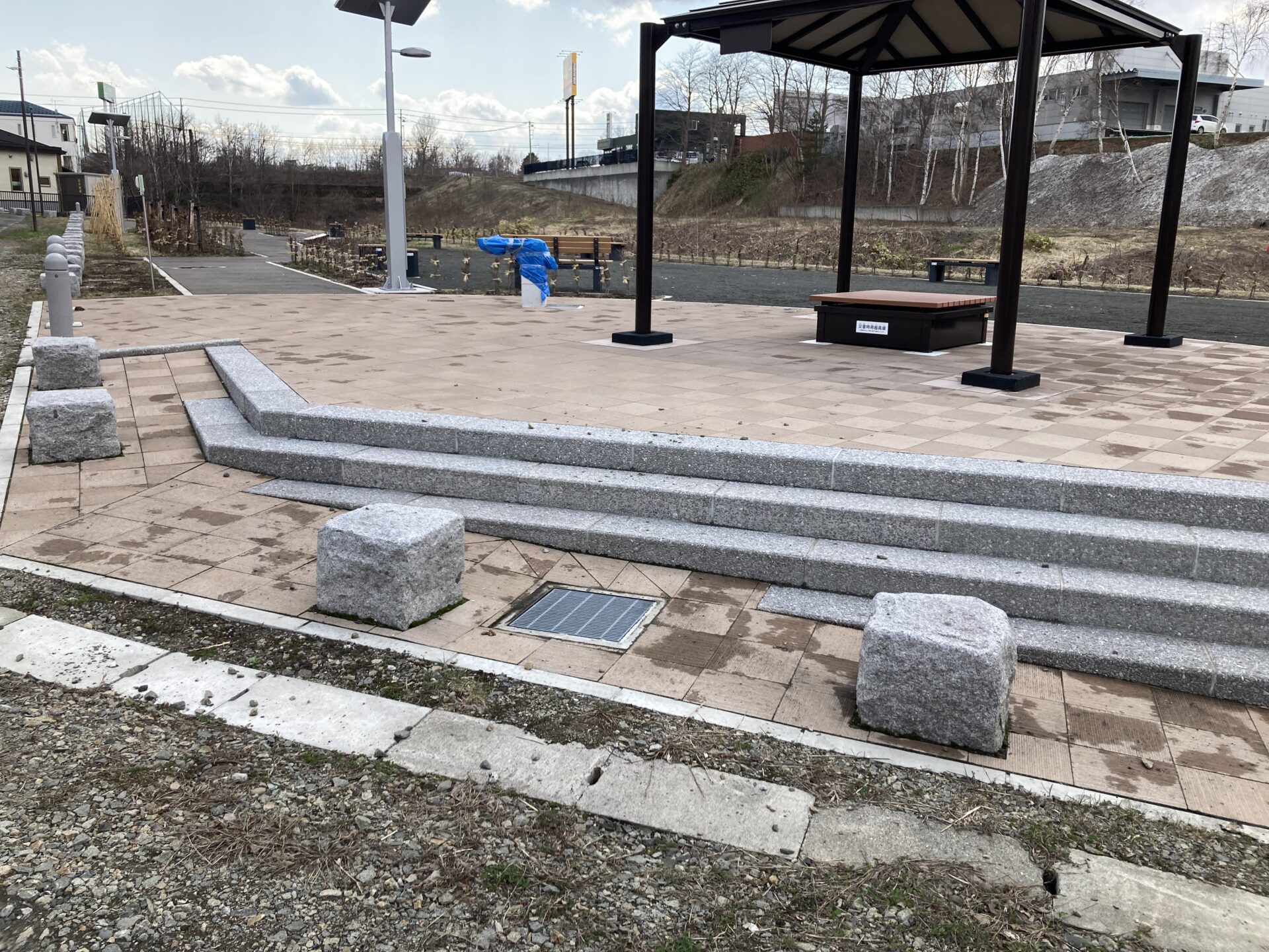 使用品目:洗出し階段ブロック 300型 ATCグレー、洗出し袖ブロック ATCグレー